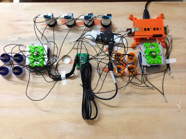 Cada botón y palanca de mando necesitan para conectar a un pin GPIO de etiquetados y a la tierra. Cada uno necesita su propio pin para GPIO, pero tuvimos que conectar varios para cada tierra. Utilizamos cables puente para cada conexión, y después de mucha frustración, al final usamos un T-Zapatero para que teníamos más espacio para trabajar con.