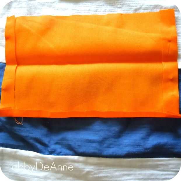 Tomar ambas telas y pliegue en los lados, inferior en cerca de 1/2 una pulgada y hierro plano (ver fotos). Tomar a la tela ocupada y doblar de arriba hacia abajo de 2 1/2 pulgadas que esta tela ahora 4 pulgadas de alto. Hierro que además. Tomar a la tela llana y dóblalo a la mitad y hierro. Si usted ha decidido no usar una plancha luego saltatelo e ir directamente a la tela hacia abajo 1/2 pulgada en la fijación.