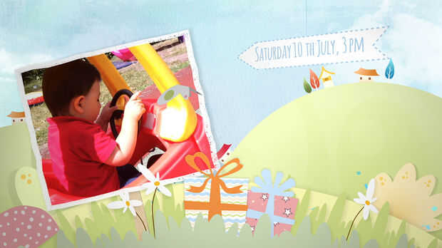 -Fotos 7 o 7 videos cortos de su niño para insertar en la plantilla. Fotos tamaño debe ser aproximadamente 1000 x 1000 pixeles o grandes de 1mb. Video tamaño 960 x 540 píxeles o más grande. Si fotos o videos son más pequeños puede escalarlos para arriba pero resultan poco pixelado en el video.