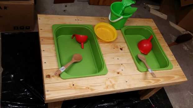 para jugar con agua, mejor aún cuando se añaden unos pequeños puñados de arena. La idea de esta tabla es dar a los pequeños un lugar para jugar con agua obtener desordenado y divertirse. El proyecto está inspirado en mi esposa y hecho fácil en una tarde con toda la familia.