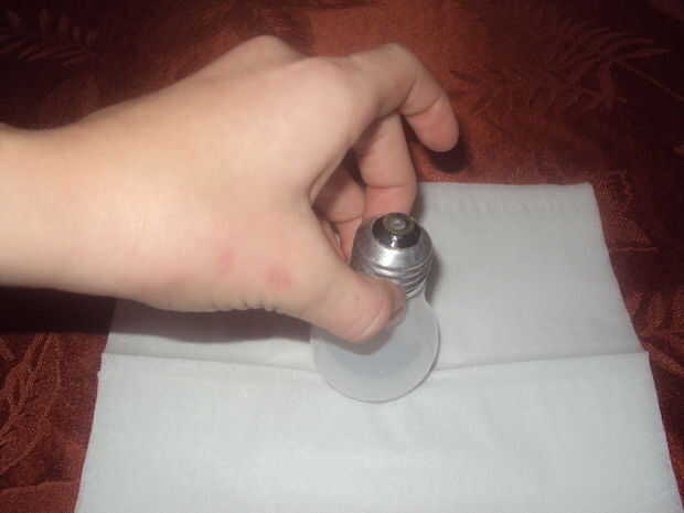 Coloque el bombilla para arriba-lado por encima de los tejidos
