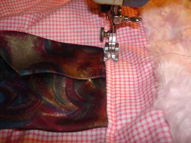 • Coser todo el dobladillo está lejos del borde porque necesitamos espacio para regresar después de esta ronda a voltear el lazo por el dobladillo cosido y cosa una costura final alrededor en el borde de costura.  Espero que me entiendas.