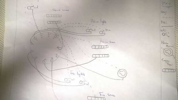 Esta parte del proyecto es muy importante y te ahorra mucho tiempo en el largo plazo. Al igual que cualquier proyecto que usted tiene que planear las cosas antes de usted comienzan a bucear en. Hice una guía de cableado que no sea ese aspecto aseado, pero tiene sentido para mi y es todo lo que realmente importa. Cada uno planifica y dibuja cosas hacia fuera un poco diferente. Más importante es que tienes una buena idea donde todo lo que necesita para colocar todos sus negativos y posotives sacado. Usted verá un poco más adelante en estas instrucciones donde coloqué mi sensores para mis coches de hot wheels conducir sobre y donde puse mis luces.