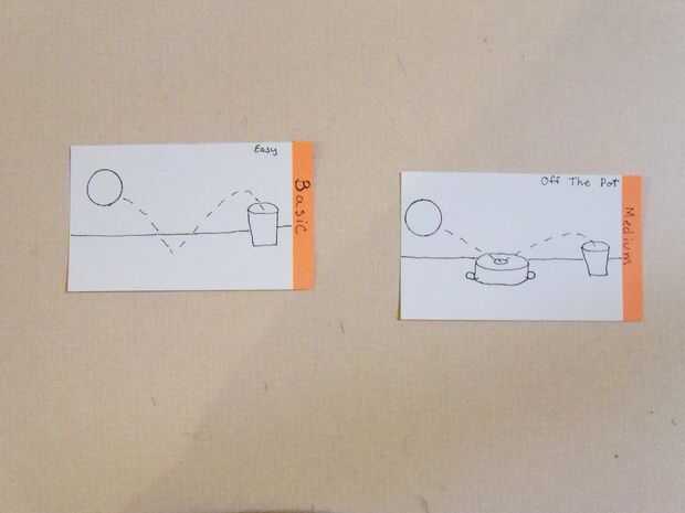Este paso mis hijos disfrutaron al máximo. Confeccionaban sus propios tiros y dibujó en las tarjetas de índice. Adición de puntos a los tiros o grados de dificultad.