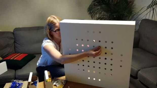 Las luces tendrá que ser desmontado antes de que se instalan. Al retirar el sello del tornillo y goma fijación Tornillo las luces en el de la parte delantera. Queríamos una cara sonriente, así que empezamos por ahí. Revise la hoja de excel para nuestro patrón pero de lo contrario solo instalarlos al azar como usted se siente ajuste. Etiqueta de cada fila y columna en la parte posterior del panel frontal y el color de cada luz. Esto le ayudará cuando se instale todo.