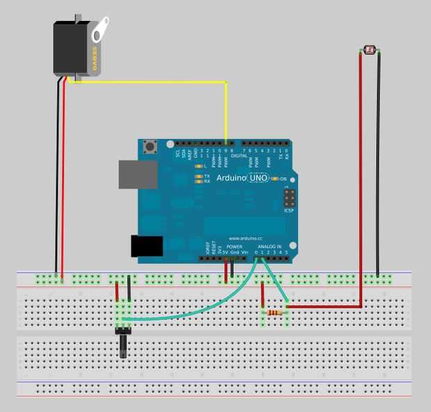 OK, ahora tenemos un perrito que mueve su cola cuando una lectura del sensor supera un umbral prefijado el código que determina por ensayo y error. ¡Eso está estupendo! Pero si las condiciones de luz ambientales cambian muy mucho probablemente tendremos que cambiar ese umbral en el código y vuelva a compilar otra vez. No es tan genial.