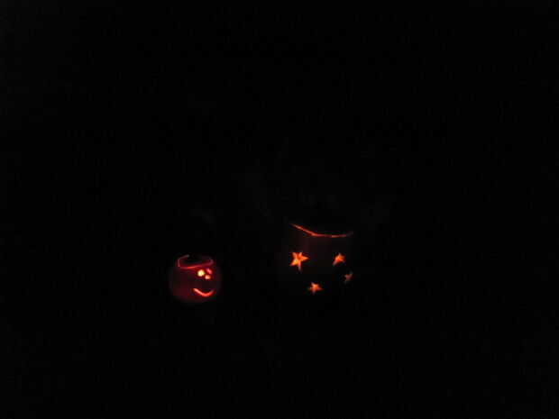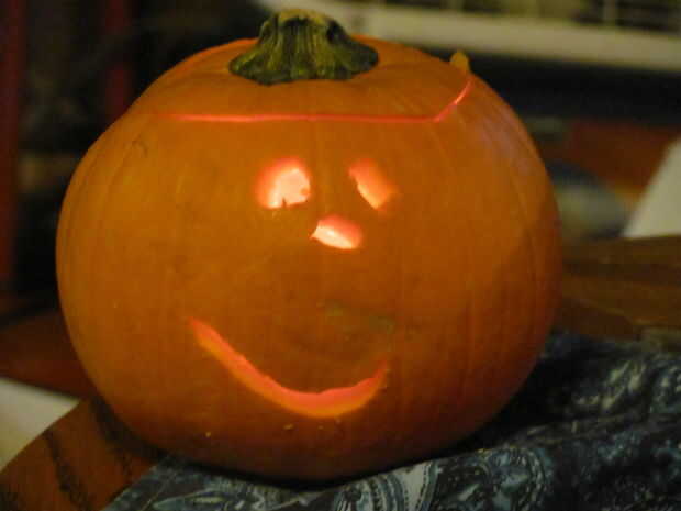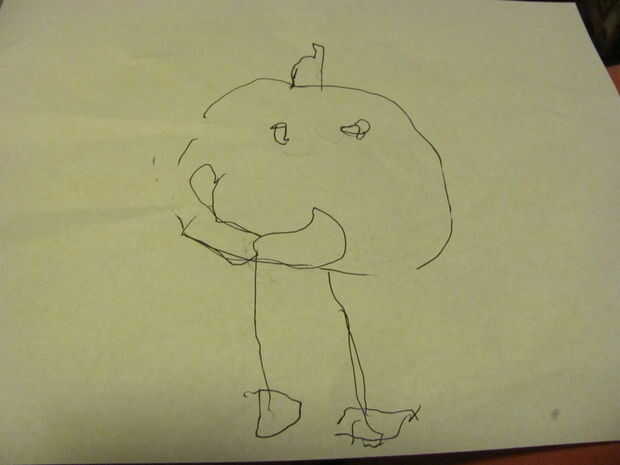 Mi hijo está encantado, y así soy yo. Creo que la calabaza salió muy cerca de la forma en que lo dibujó. Es ahora en nuestros pasos delanteras, entre mis calabazas y mi marido. Creo que encaja perfectamente.