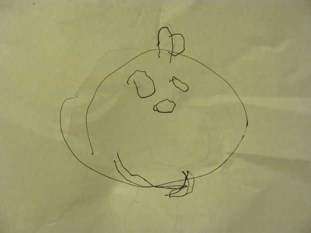 Dibujé un círculo que era lo suficientemente pequeño como para caber en la calabaza y le pidió que dibuje un rostro en ella. Él no estaba contento con el primero, por lo que le dio otra oportunidad. Cuando hubo terminado, grabó a su calabaza y utiliza como las plantillas que vienen en los libros se pueden comprar (poke agujeros aunque el papel para el diseño del esquema entonces labró las piezas).