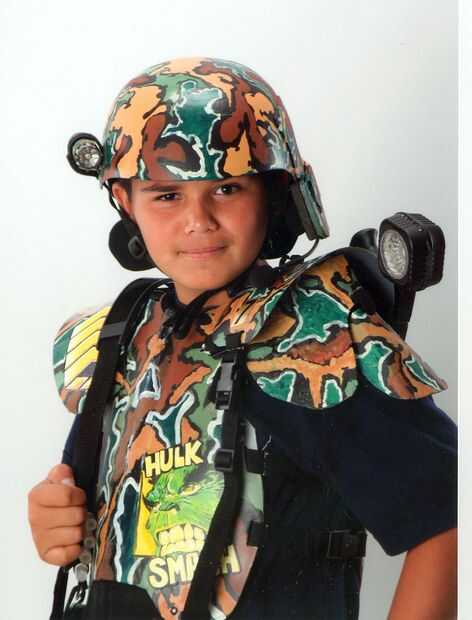 Mi hijo quería ser Emmet de LEGO película de Halloween por eso busqué todo el traje a cada minorista pueda imaginar, después de que había quedado sin opciones decidí que intentaría hacer su traje en casa. La cabeza y el cabello son sólo una hoja de e