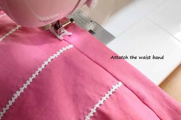 Coser la banda de la cintura dejando fuera extra aproximadamente 3/4 a 1 pulgada en el lado izquierdo. Se trata de superponer.