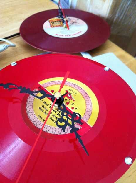 Una de mis partes favoritas de este proyecto es que reutilizar de un registro obsoleto que no terminan en un vertedero y también, si uno quiere escuchar el disco todo lo que necesitas hacer es sacar las joyas poco y quitar el kit de reloj!! No pegar nada en el registro y por lo tanto puede disfrutar de este doble!