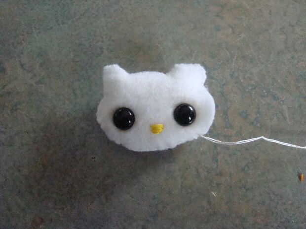usé blanco hilo a coser la parte delantera de la cara en la parte posterior de la cabeza.  Cuando tenía apenas un pequeño agujero abierto, rellena la cara con un poco de bateo.