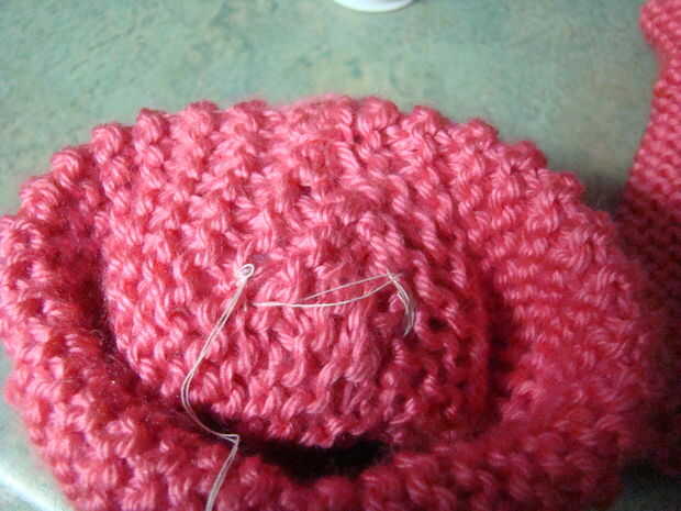 Hice estas pantuflas de conejito poco para el día de San Valentín para mi nieta de 2 año de edad. Materiales incluyen un grueso hilo rosa para el cuerpo y los oídos, un hilado abigarrado del normal rojo/marrón para la cola, nariz, pestañas y botones