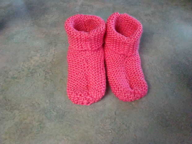 Hice estas pantuflas de conejito poco para el día de San Valentín para mi nieta de 2 año de edad. Materiales incluyen un grueso hilo rosa para el cuerpo y los oídos, un hilado abigarrado del normal rojo/marrón para la cola, nariz, pestañas y botones