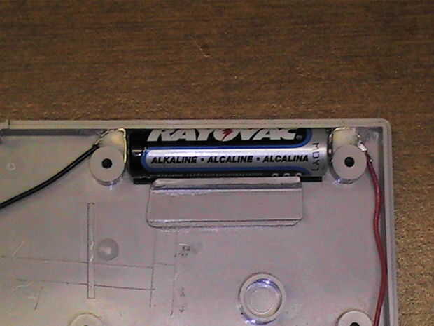 En primer lugar, cortar una esquina de 90 grados de un repuesto controlador de copia de seguridad o alguna otra pieza de plástico. Hacer un poco más corto que la AAA.