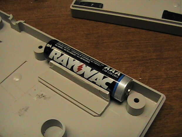 A continuación, coloque la batería de AAA en la esquina superior derecha del controlador.