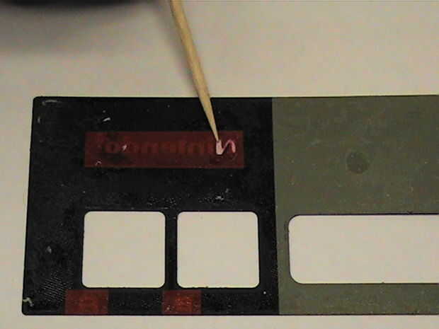 * Si usted es cuidadoso, puede quitar la pintura de alrededor de la insignia de "Registrado". Darle un tiro, en ligeros movimientos circulares. Si te equivocas, cinta sobre con un cuadrado pequeño de cinta aislante negra.