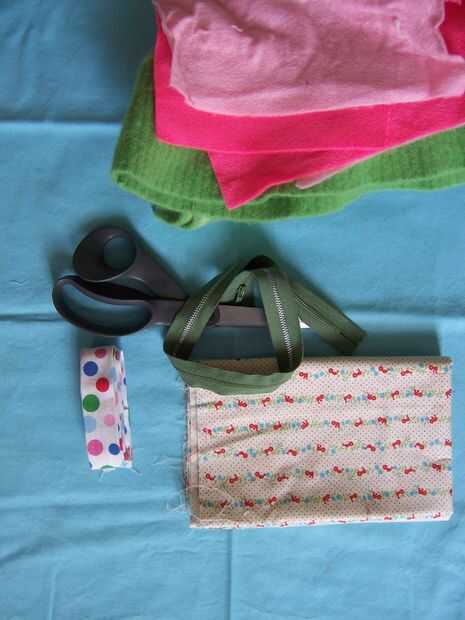 retazos de fieltro o de tela roja, amarillo, blanca y verde