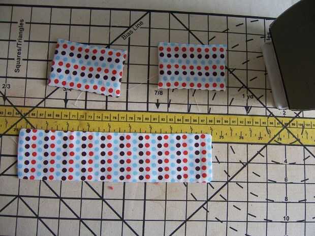 Pliegue el 5.5 x 4 rectángulos que corta de la tela de acento en rectángulos de 4 x 2,25. Siguiendo el método descrito en la parte superior de este paso, coser alrededor de los tres bordes desplegados, dejando una abertura para dar vuelta de 1,5 pulgadas. Gire a la derecha hacia fuera.