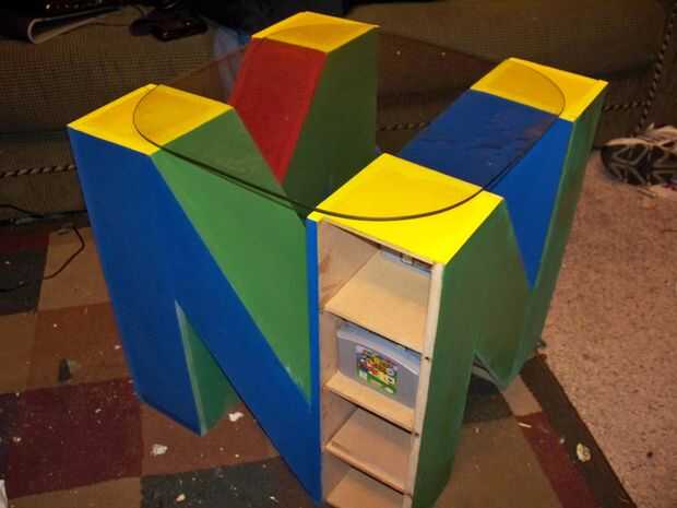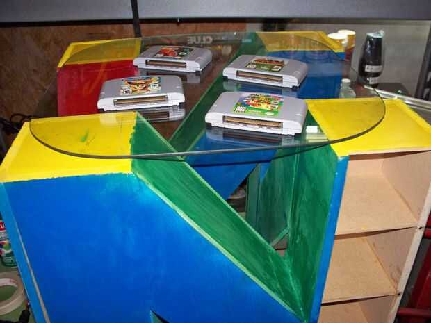 Mi intención para esta tabla es tener una tapa de cristal y que se utilizará para la celebración de juegos. Los estantes son suficientemente ancha como para juegos de Nintendo 64 y nacs de nick pero no suficientemente ancha como para PS3 o X360 casos del juego.