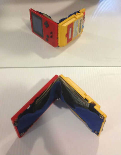 Decidí hacer una billetera de un par de rotos bolsillos de Gameboy que estaban más allá de reparación.