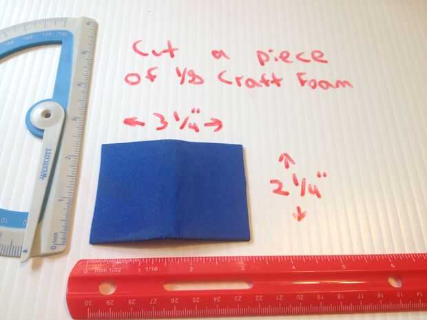 1. Cortar un trozo de espuma de 1/8 '' 3,25 '' a 2,25 ''.