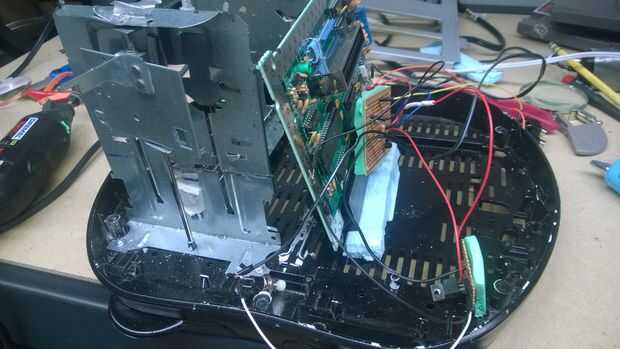 Terminar todos los soldadores que todavía tienes que hacer (el hardware-hardware), siguiendo los esquemas. Recomiendo tener los conectores de AV en la parte posterior de la tostadora y el circuito de cableado en la parte delantera de la palanca de encendido/apagado. Montar el tablero en el centro. Usé un montón de tablero de la espuma y eléctricas para hacer que ningún metal tostadora tocó el tablero de juego (Asegúrese de que usted tiene cuidado sobre eso). Sostiene mi tablero con guita, así que quedó hacia arriba incluso cuando un juego se colocó en.