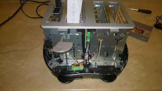 Usted notará que cuando pones el juego, es muy floja (y no realmente conectado a los pines). Conseguir alrededor de esto, tan torpe como parece, introduciendo algo en la tostadora para compensar el juego sentado en un ángulo recto/recto. Debe ser casi paralelo al tablero de juego.