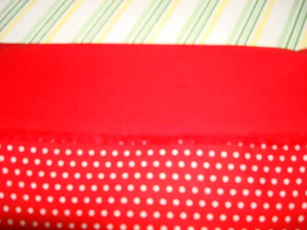Pulse un dobladillo de 1/4 de pulgada en la parte superior de la bolsa de revestimiento hacia el lado equivocado de la bolsa de forro.