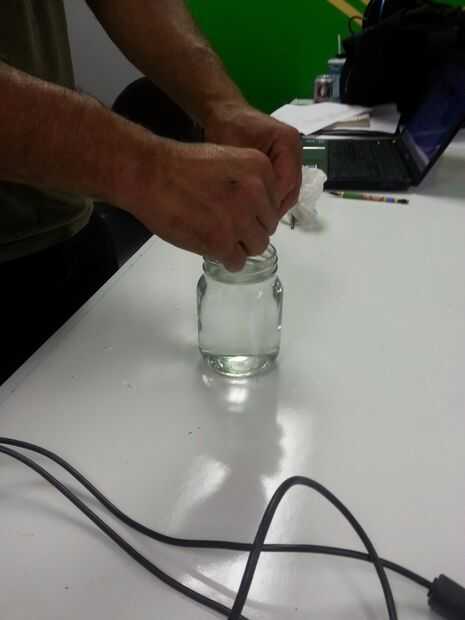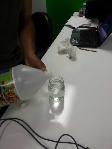 Llenar el tarro de masón con el vinagre y añadir algo de sal. Se hará una pequeña cantidad de sal.