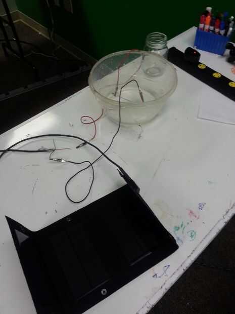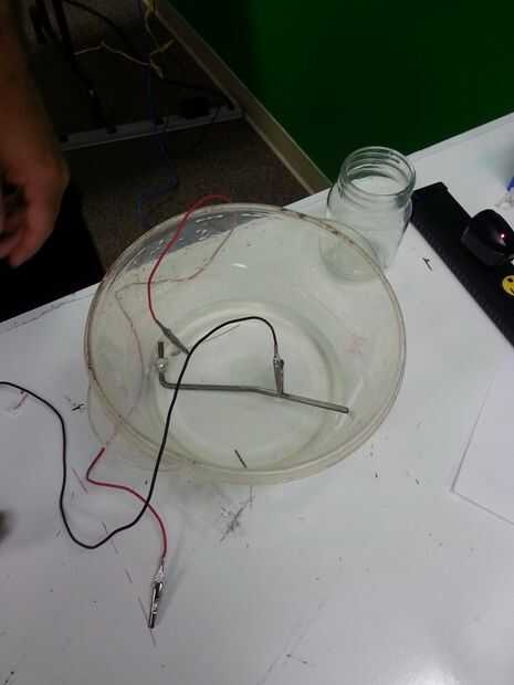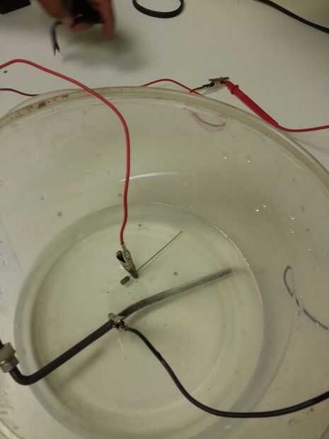 La inmersión en lo que desea la placa (en este caso era una barra de trémolo) y el clip en el extremo negativo.