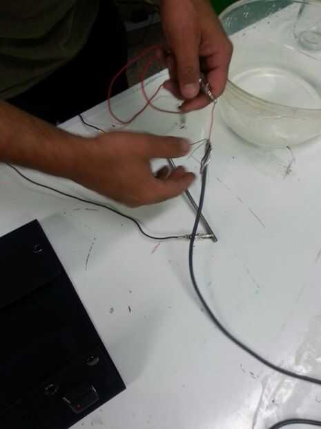 Una vez que tenga su baño níquel conectar una pequeña cantidad de su material de níquel con el lado positivo.