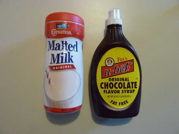 Necesita: un jarabe de chocolate de buena calidad. Yo uso "u-bet", que, en el sur donde vivo, es casi imposible de encontrar. Si usted vive en el área de Nueva York, le resultará en todas partes. Si no lo encuentras, habla con el tendero y podrás tenerlo entregado. U-bet es más dulce que todas las demás marcas, marcas cremas de huevo asesino y para mí, la única manera de ir. También necesitarás Malta. Yo uso leche de clavel malteada mix.