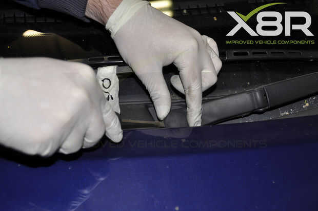 Usando un tornillo plano hoja conductor quitar las tapas de lo limpiaparabrisas brazos para revelar las tuercas.
