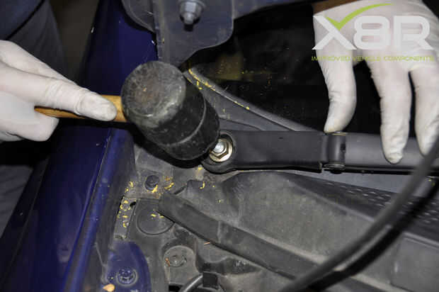 Si los brazos no pueden sacarse fácilmente volver a colocar las tuercas. Volver a contar con choque las tuercas con un pequeño martillo o mazo para sorprender los brazos libres, los brazos ahora estará libres para quitarse con las tuercas.