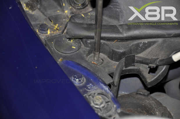 Quite los dos tornillos de cada lado de la huida. También vale la pena quitar la parte de localización del tornillo con un destornillador de hoja plana.