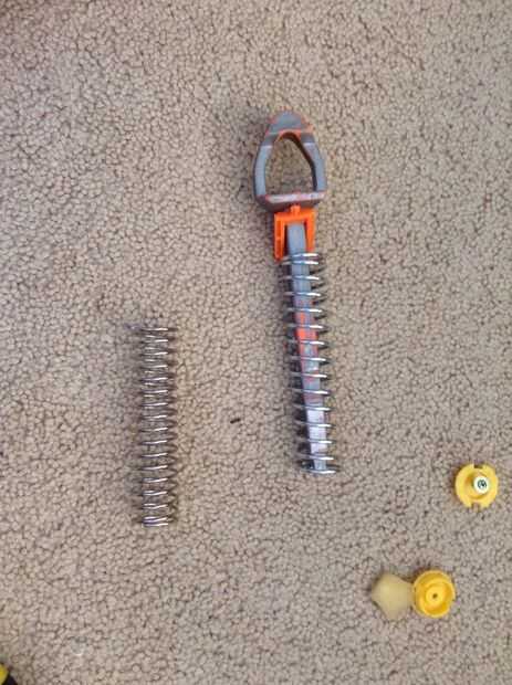 Para reemplazar el resorte que todos tenemos que hacer es sacar el resorte viejo vestíos de la nueva primavera vuelva a colocar la otra punta en y atornille nuevamente juntos.