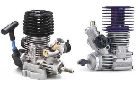Los dos tipos de carburadores son diapositiva y el barril. Los carburadores del barril del viejo estilo todavía dominan el mercado debido a su simplicidad en el diseño y debido a la tendencia para los diseñadores para aferrarse a antiguo diseño. Estos han estado alrededor desde el comienzo de combustible glow aviones. Controlan el flujo de gas/aire girando un cilindro con un orificio en cada lado que permite cantidades variables de mezcla gas/aire fluya a través del carburador como se agranda la abertura de agujero a venturi (eje de aire hacia abajo en el centro del cuerpo carburador).