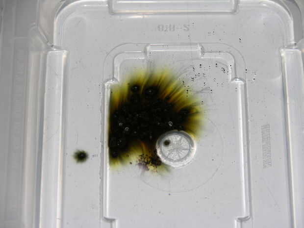 Ahora tienes el NI3 compuesto muy inestable. Es relitavely segura para manejar mientras está todavía húmedo, pero no es garantía de nada, se ha sabido ir mientras que todavía húmedo. Así que desde este punto en ser muy cauteloso alrededor de él.