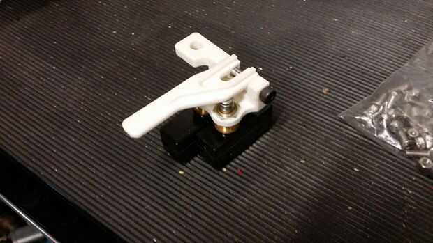 Se trata del fab sólo trabajos a realizar en este proyecto, necesita un golpecito de 10-24 e instala simplemente toque el agujero donde atornillar el hombro. Luego tomar los 2 conmutadores e instalarlos en los 2 agujeros de gran diámetro y asegure con tuercas incluidas. Luego, simplemente coloque el brazo en su lugar y apriete el tornillo de hombro, asegúrese de que usar un pegamento como armario de hilo no vienen suelto.