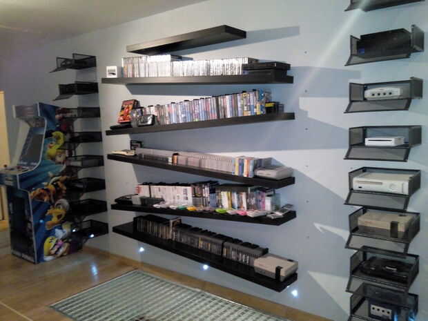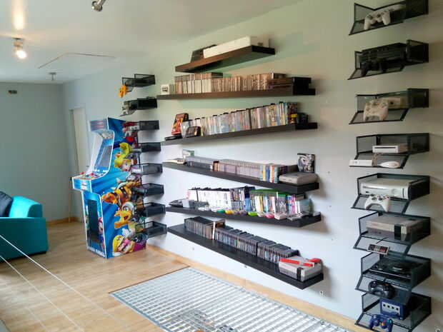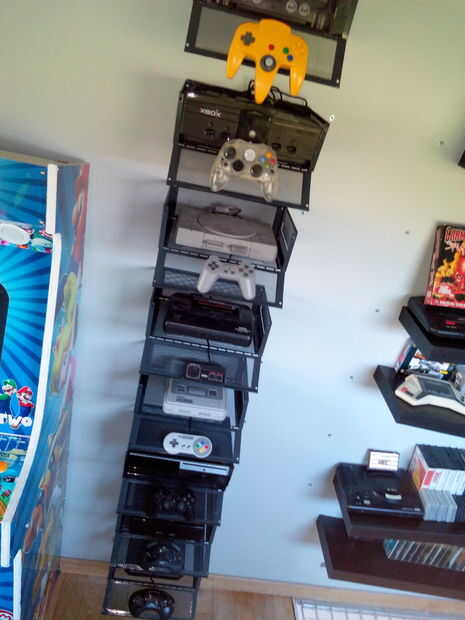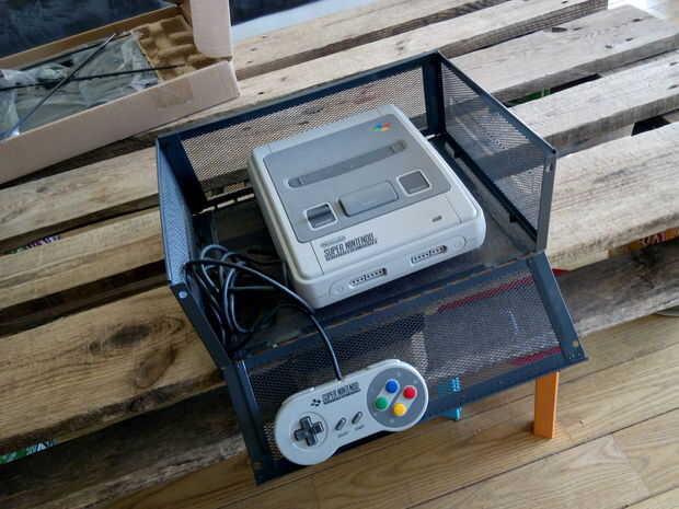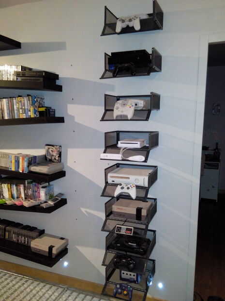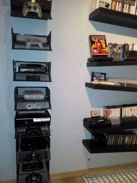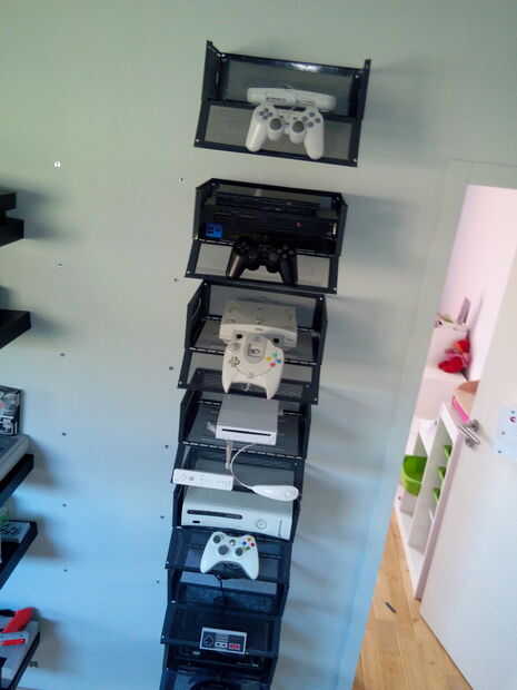 Para colgar la consola, hackeado muchos muebles de ikea LENNART para recuperar las bandejas de