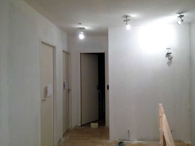 El espacio estaba en blanco. Sólo desnudo cartón yeso, bandas realizadas pero no todos arena, placas de OSB en la floor.the primer paso fue poner el bajo capa sobre las placas de pladur