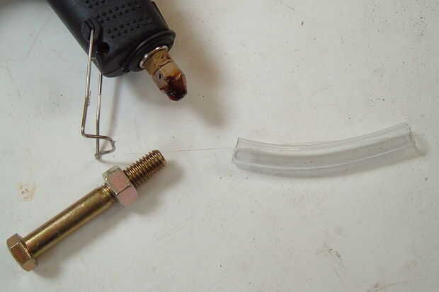 Coloque una tuerca en el perno. poner pegamento caliente en el extremo del perno y poner el tornillo en el tubo de plástico. Los pernos deben ser capaces de sello líquido. un pegamento caliente + ajuste ajustado debe hacer el truco.