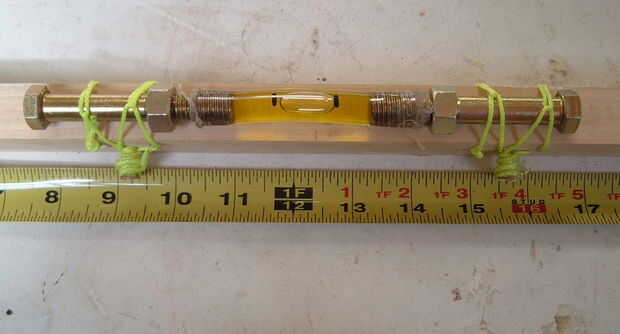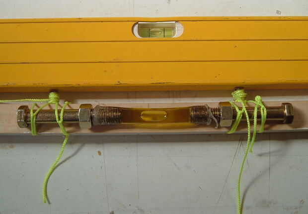 Como se ata, la burbuja de aire en el tubo debe estar centrada en el tubo aproximadamente. Si esto no es el caso, compruebe que los pernos son el mismo nivelan. Otro problema común es que el tubo está doblado y no así de nivel. Utilice un espacio más pequeño entre los pernos a un tubo más plano. También, revise otro nivel, porque tal vez la mesa de que trabajo no es nivel.