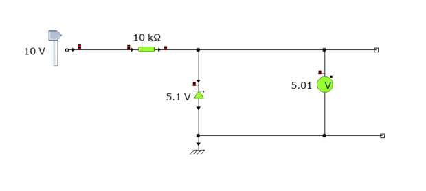En el segundo ejemplo, estoy "regular" 5.1V después de caminar de 10V. Esto no debe confundirse con una regulación de corriente/voltaje constante. Mejor se utiliza como una señal con poca o ninguna carga.