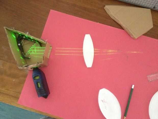 Puede demostrar la convergencia de la luz en análogos de bloque de vidrio de las lentes.