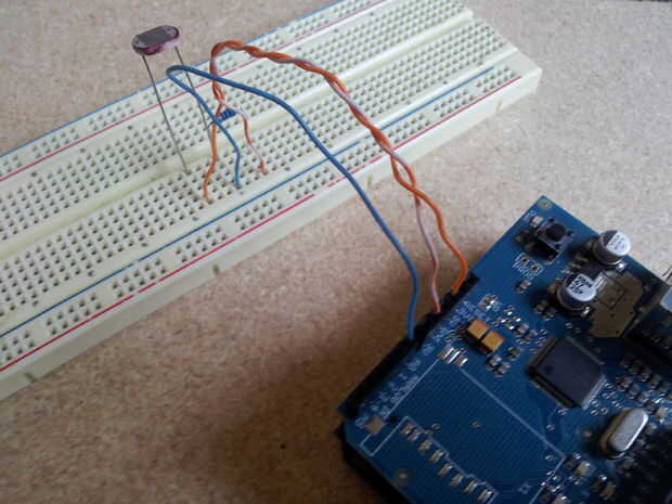 Añadir el cable de conexión. Hay tres cables que deban conectarse a tu Arduino (5V, GND y el Pin analógico 0).