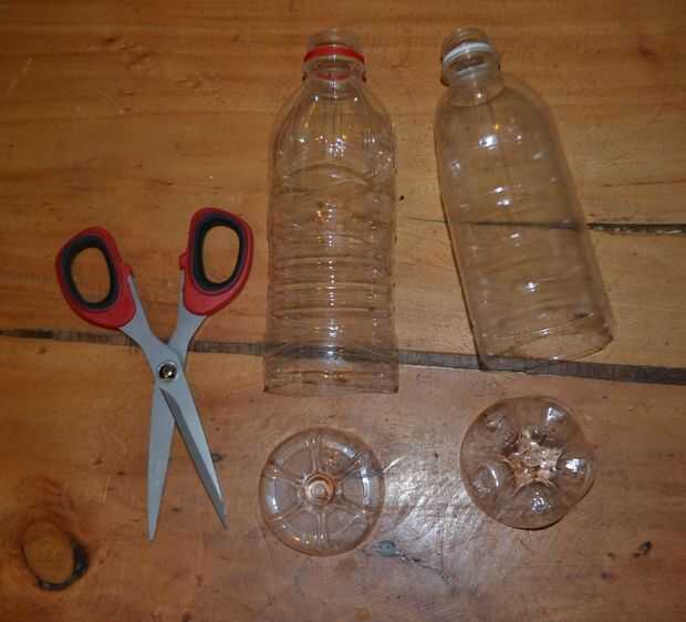Corte la parte inferior de las botellas de plástico.