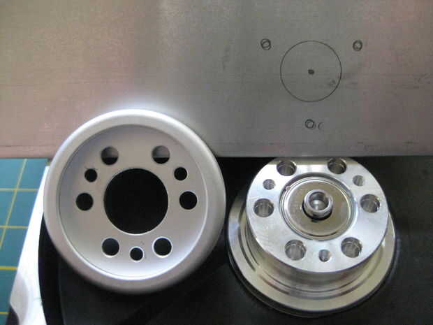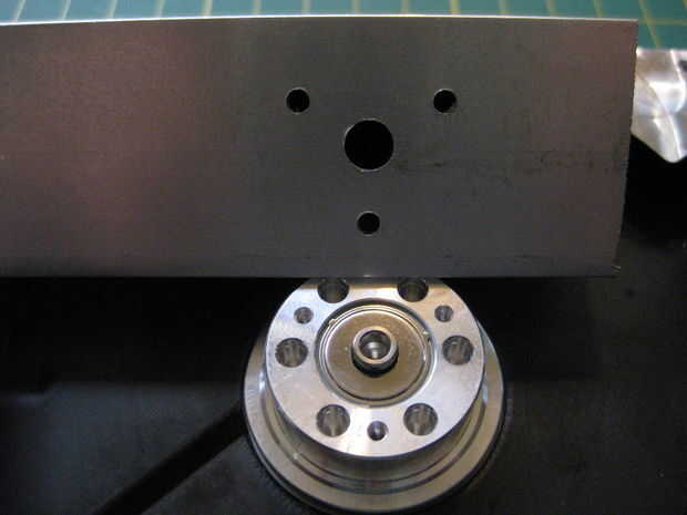 Una vez que el disco estaba rayado miré cómo utilizar el conjunto del motor como parte del cardán.