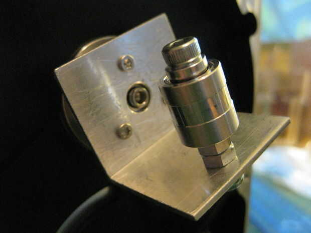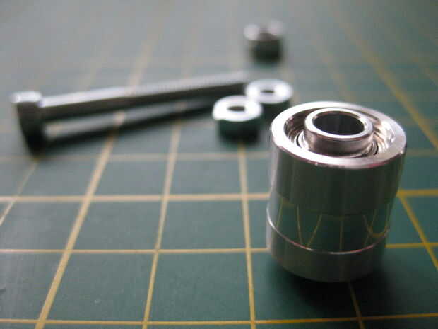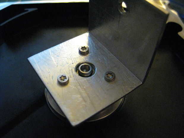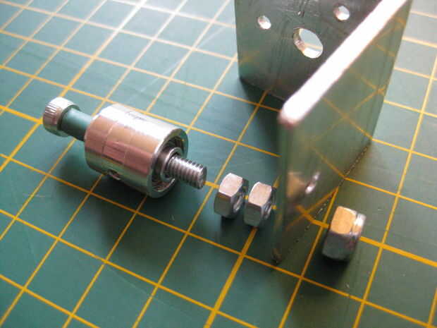 Cortar un tornillo a medida y con un par de tuercas como espaciadores y algo de calor retráctil para evitar que la tuerca de centrado en el cojinete que montado el segundo eje en el ángulo de aluminio.